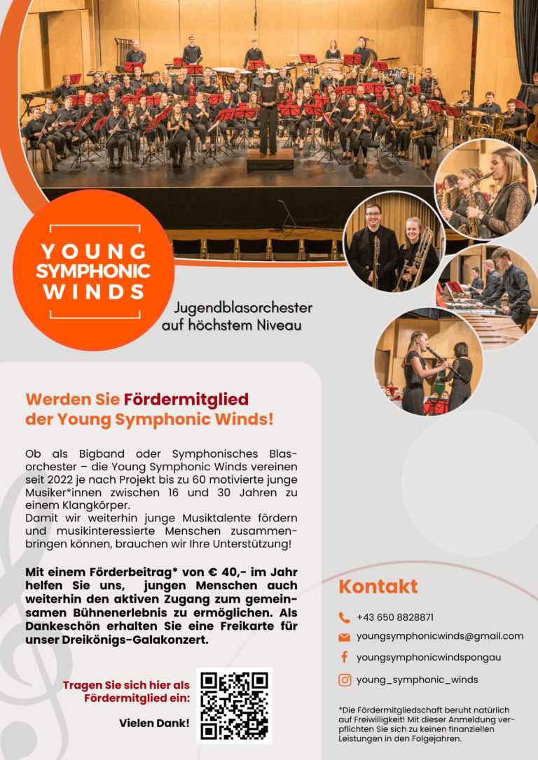 sind ein Projektorchester, das 2022 von Dirigentin Katrin Fraiß mit dem Vorhaben gegründet wurde, junge, musikbegeisterte Menschen zu einem Klangkörper zu vereinen, um hochkarätige Konzerte aus dem Bereich der zeitgenössischen Blasorchesterliteratur auf die Bühne zu bringen.